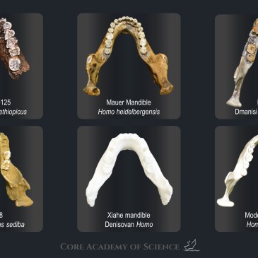 The recent discovery of the Denisovan Xiahe mandible brings to mind the question of how the Denisovans compare to other hominin fossils. In this image, we have replicas of six different hominin jaws to scale, and we can begin exploring the similarity and diversity of these ancient fossils. The Xiahe mandible appears bottom center with … More JAWS!